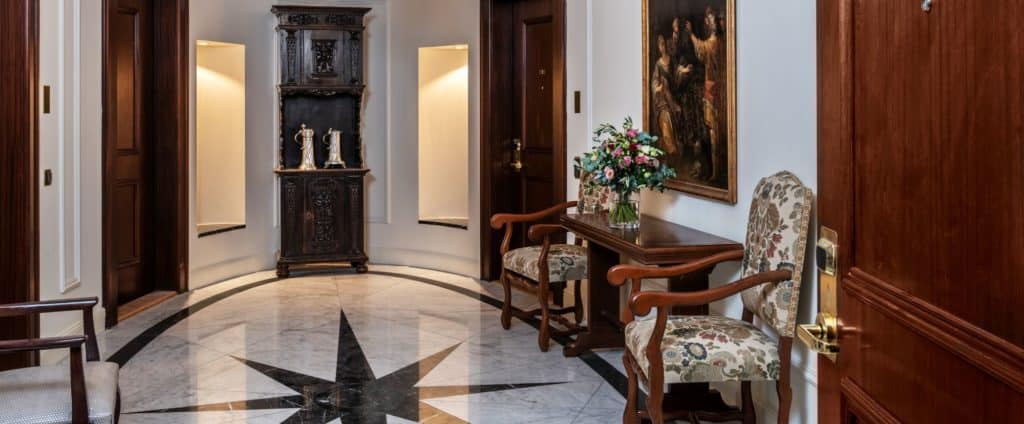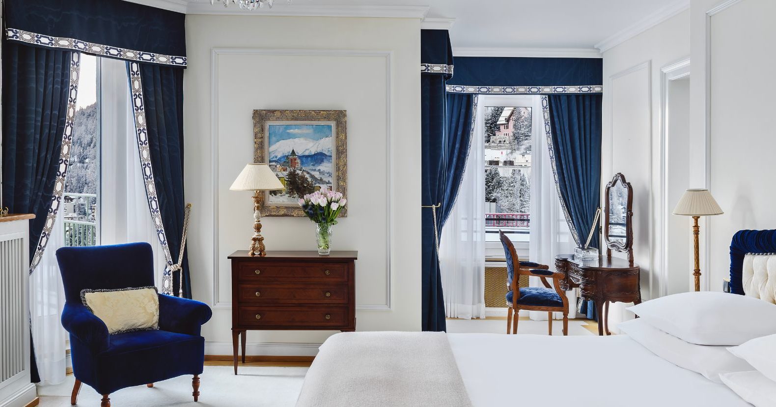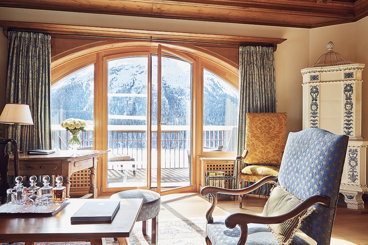 At Badrutt’s Palace, with 155 keys, even the most basic rooms are a masterclass in refined alpine style. They have that perfect mix of classic Swiss charm and modern luxury, making them feel cozy yet refined. Rich wooden accents, super-soft fabrics and stylish furniture create a warm, inviting vibe—ideal for kicking back after a day out in the cold. Big windows show off incredible views of Lake St. Moritz or the Engadin valley, so you can wake up to some seriously breathtaking scenery. The marble bathrooms add a little extra touch of luxury, with all the high-end amenities you’d expect. It’s all about combining the hotel’s rich history with those thoughtful details that make your stay feel extra special.