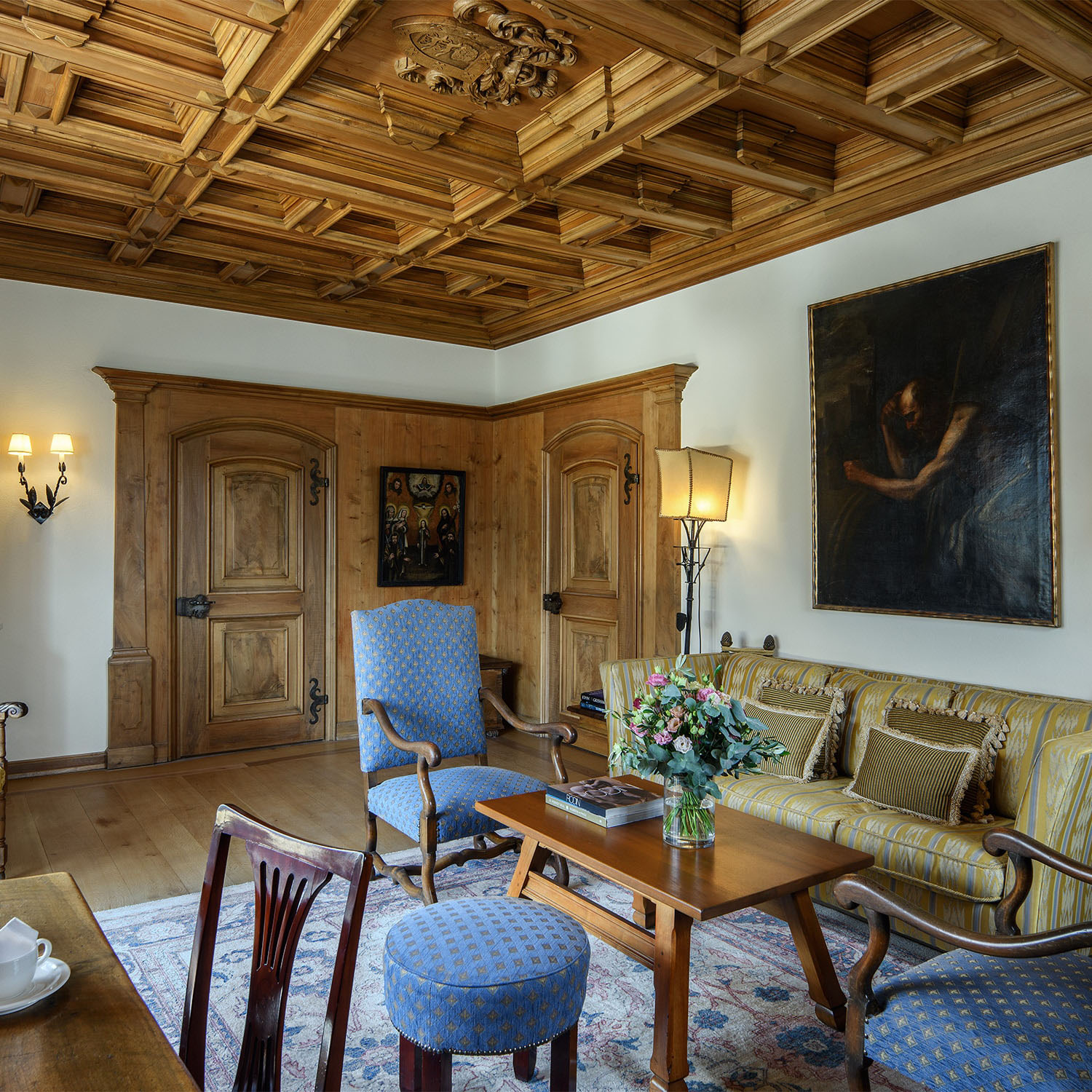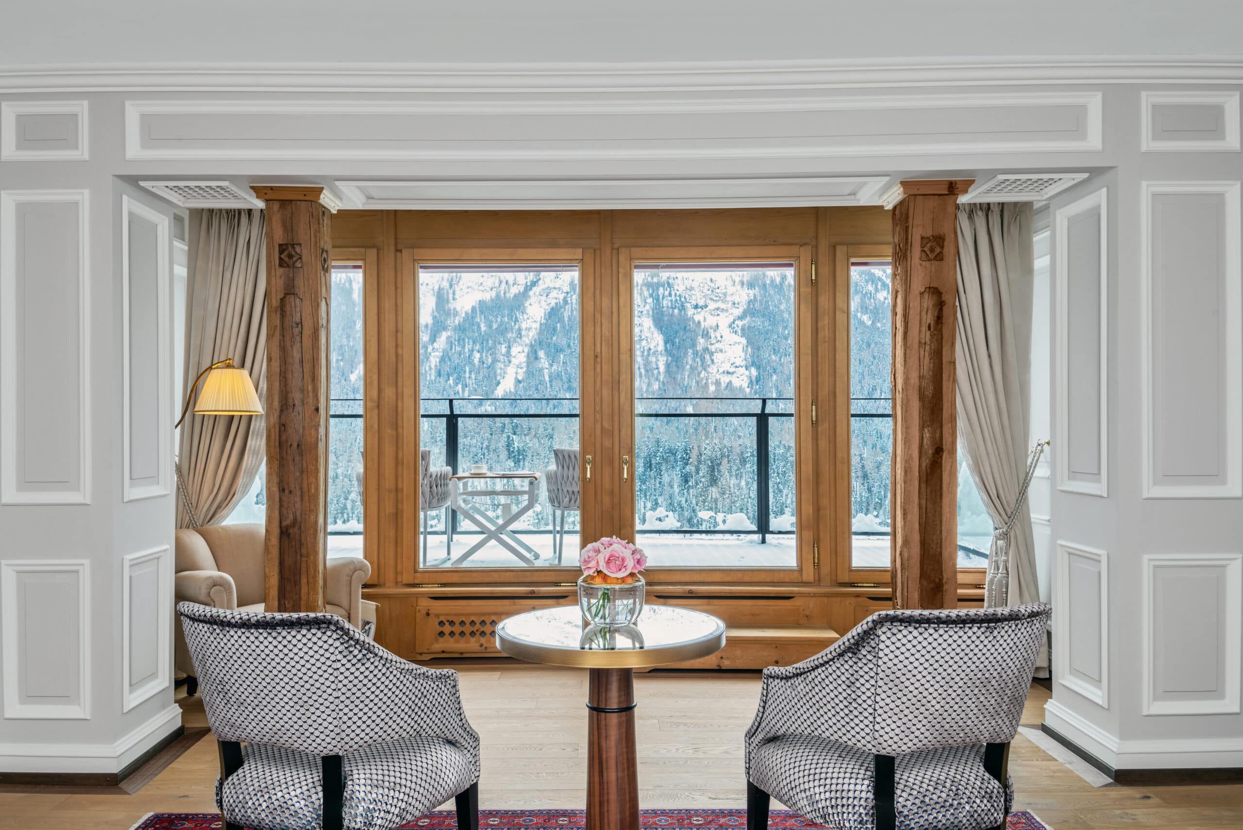 But, as always, it’s the suites that truly steal the snowy show. The Junior Suites are a study in understated luxury, with spacious living areas that blend effortlessly into cozy sleeping quarters. Thoughtfully arranged, they offer stunning views of the Engadin mountains or Lake St. Moritz, inviting the natural beauty of the surroundings right into the room. The décor balances a classic Swiss feel with contemporary touches, providing all the modern comforts while maintaining a sense of place. It’s the perfect option for those who want a bit more room to relax while soaking in the alpine atmosphere.