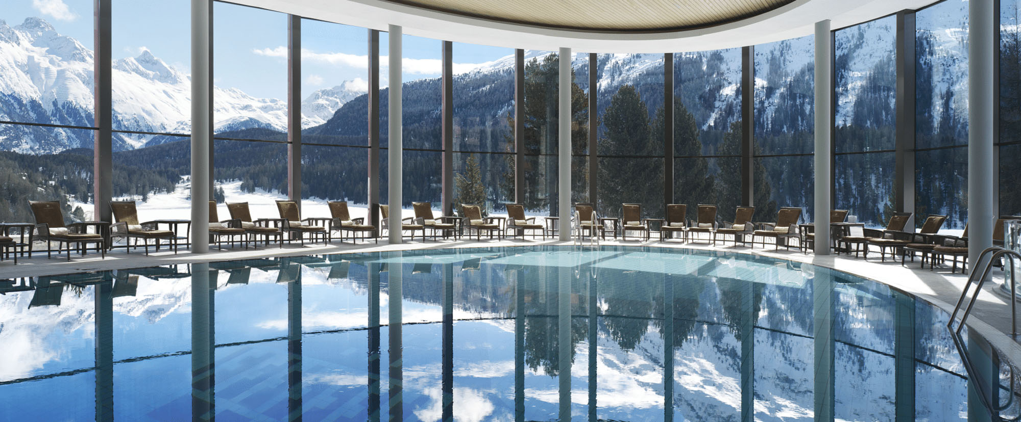 Badrutt’s Palace is well aware that skiing isn’t the only way to enjoy winter, and their wellness offerings are proof. The Palace Wellness features an indoor infinity pool that gives the impression of floating right into the mountains. The outdoor Jacuzzi, surrounded by snow-covered pines, offers a hot soak with a view. And when the temperatures drop, there’s nothing like the warmth of a traditional Swiss sauna.