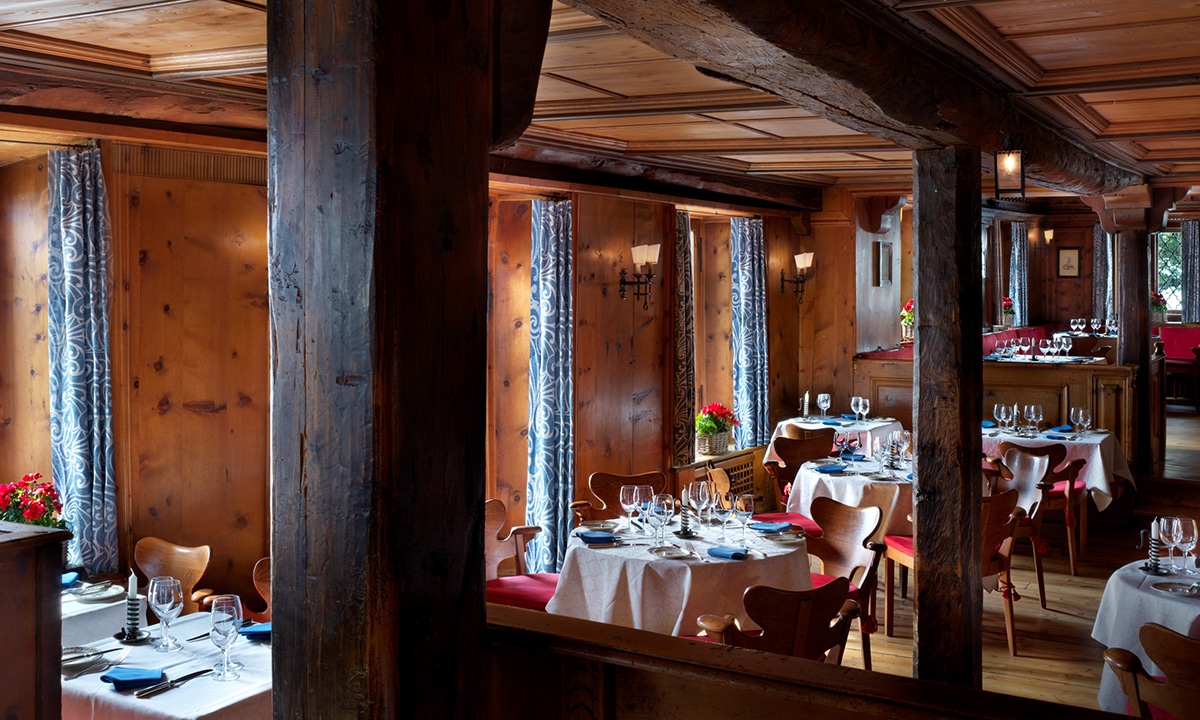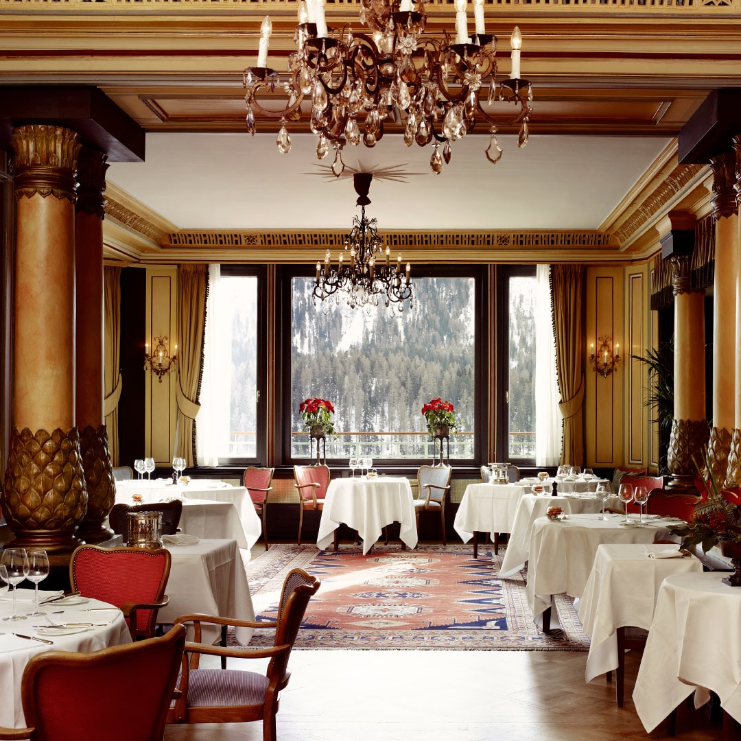 Badrutt’s Palace in St. Moritz is home to a diverse collection of dining venues, each offering its own unique flair and flavor–with so many options you almost need a map to navigate! Whether you’re looking for a fine-dining experience or a cozy, relaxed meal after a day on the slopes, there’s something for every palate here. A word to the wise when packing, many of the higher end restaurants on property have an elegant dress code, meaning jackets for the men and fine dressing all around.