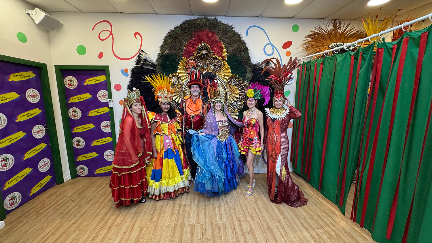 On the tour, you walk through the massive warehouses where floats are constructed. These aren’t floats—they’re moving stages, towering sculptures that tell a story in vivid color. Artists paint, weld, and stitch with the kind of passion that makes it clear this is not just work; it’s devotion. Then there are the costumes: racks upon racks of feathers, rhinestones, and fabrics that make Broadway wardrobes look minimalist. Every piece has meaning, designed to bring each school’s story to life.
