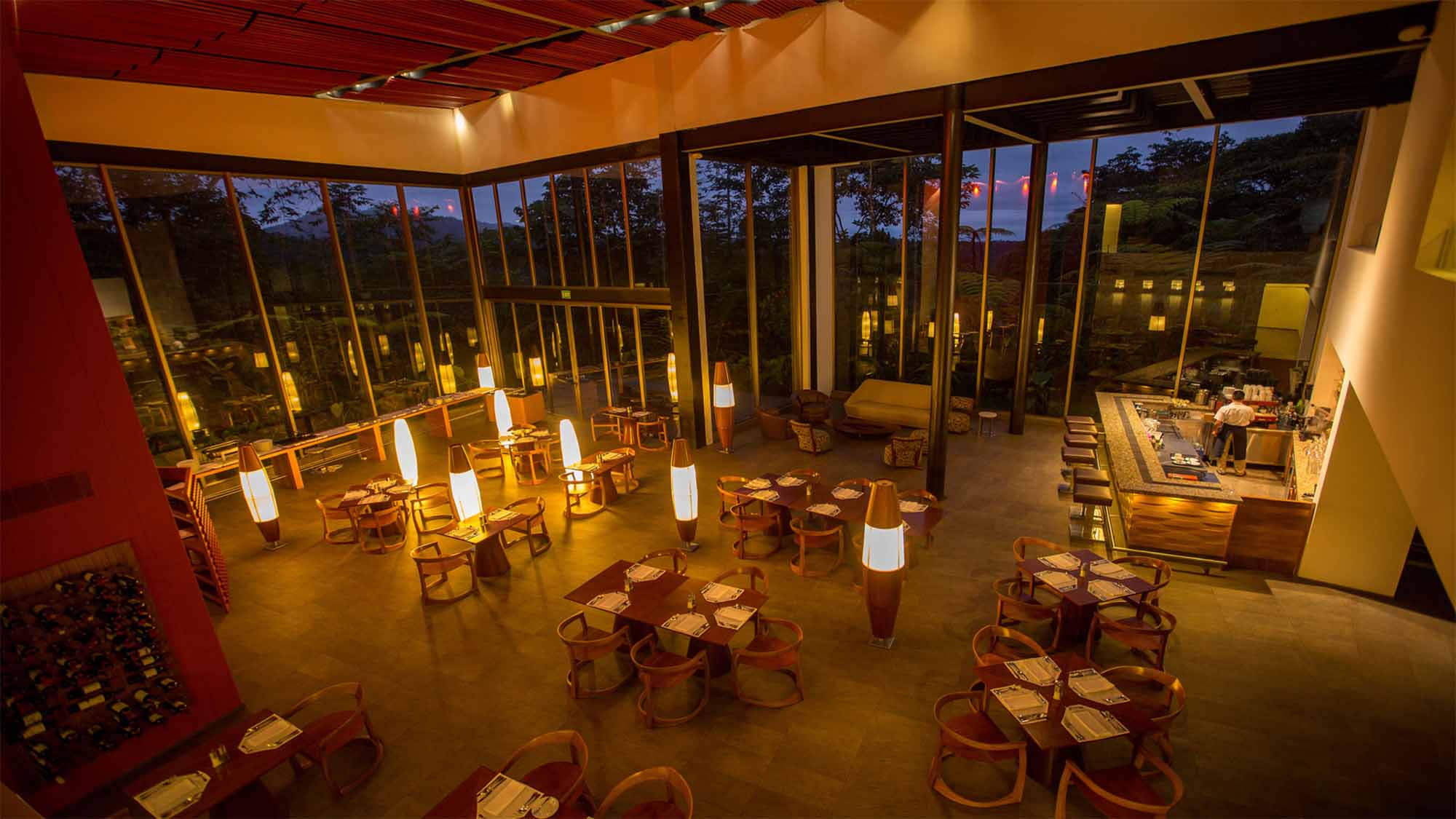 One of our favorites and most recommended unique stays is the eco-friendly Mashpi Lodge, a modern boutique hotel (housing only 48 guests) with luxurious rooms and suites. The floor to ceiling windows provide captivating views of the forest. On-site amenities include a spa, Reading and Learning Area and a two-story–very dramatically designed–restaurant featuring ingredients from the surrounding rainforest.