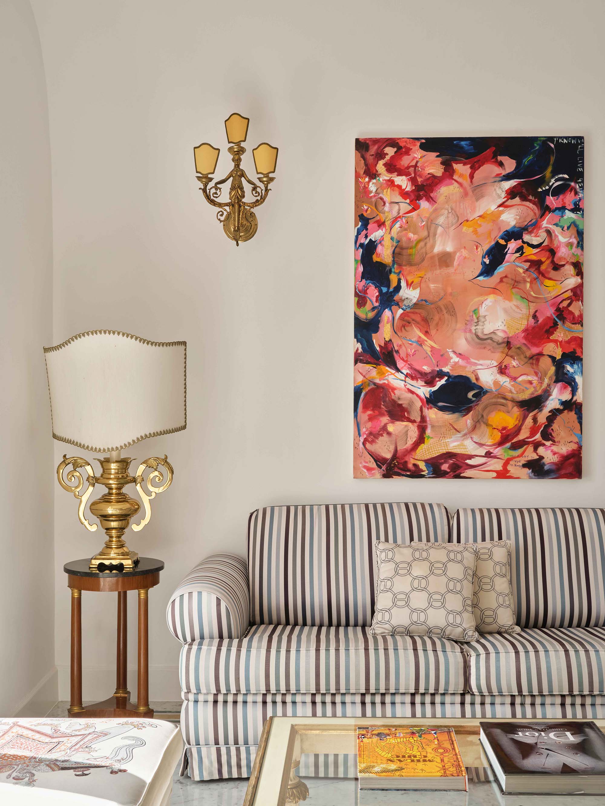 The first rooms you encounter draw your eyes even higher to the vaulted ceilings, matched only by the intricate marble floors below. The space is sophisticated and perfectly posh, with antique furnishings, exquisite tapestries and historical art pieces that adorn the space. From here, you’ll explore the Michelin-starred restaurant–Rossellini’s–a panoramic terrace, infinity pool and more.