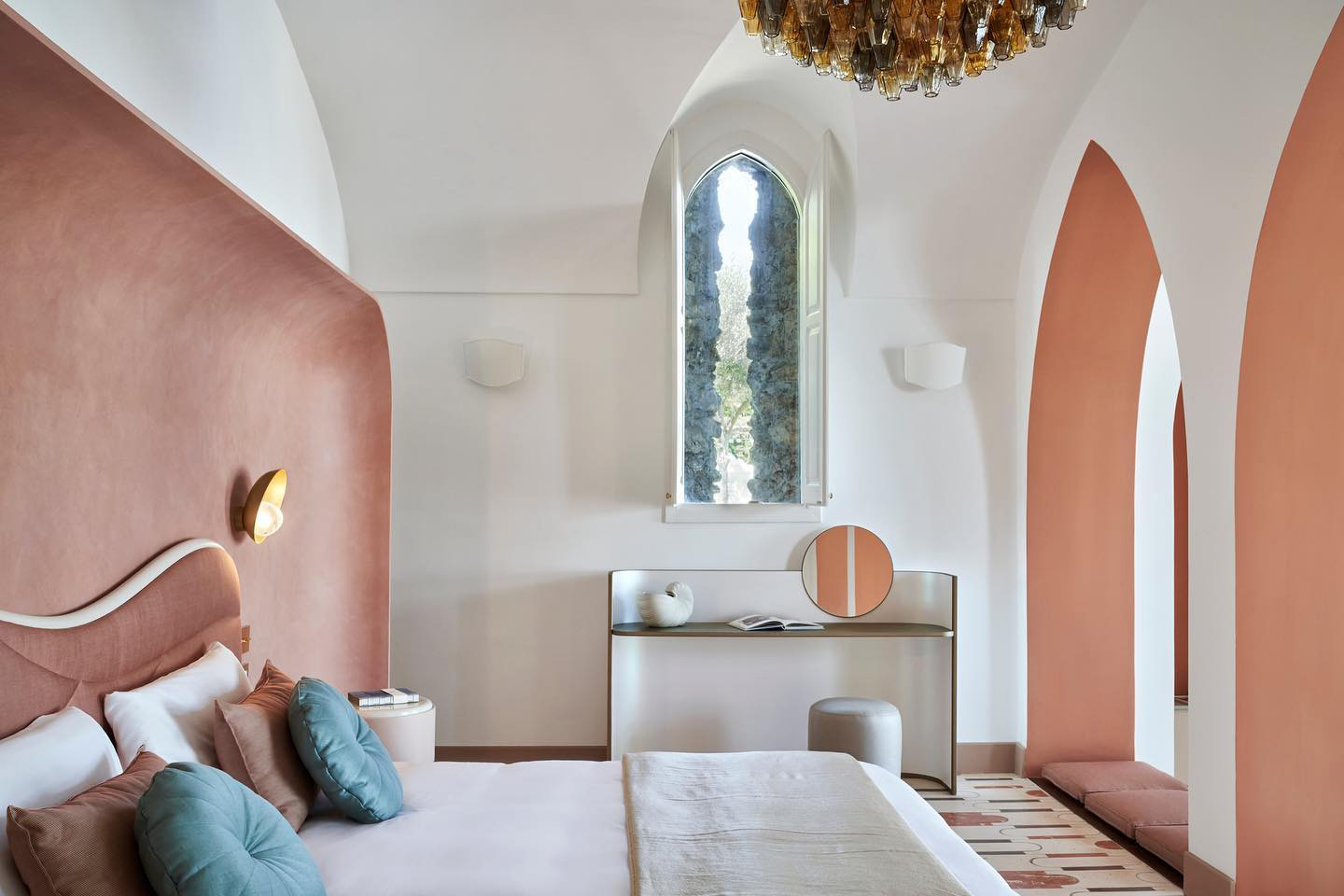 Ravello is one of those places that screams regal. It’s situated far above any of the hot spots on the Amalfi Coast, almost sitting at the head and closer to the mythical Gods, whose stories echo through the region. Palazzo Avino embraces this noble feel from the moment you wind up to the entrance of the property. Immediately struck by the grandeur of the building, and with a color that feels like the perfect setting for a Wes Anderson film, you’ll be enticed to see what lies within.