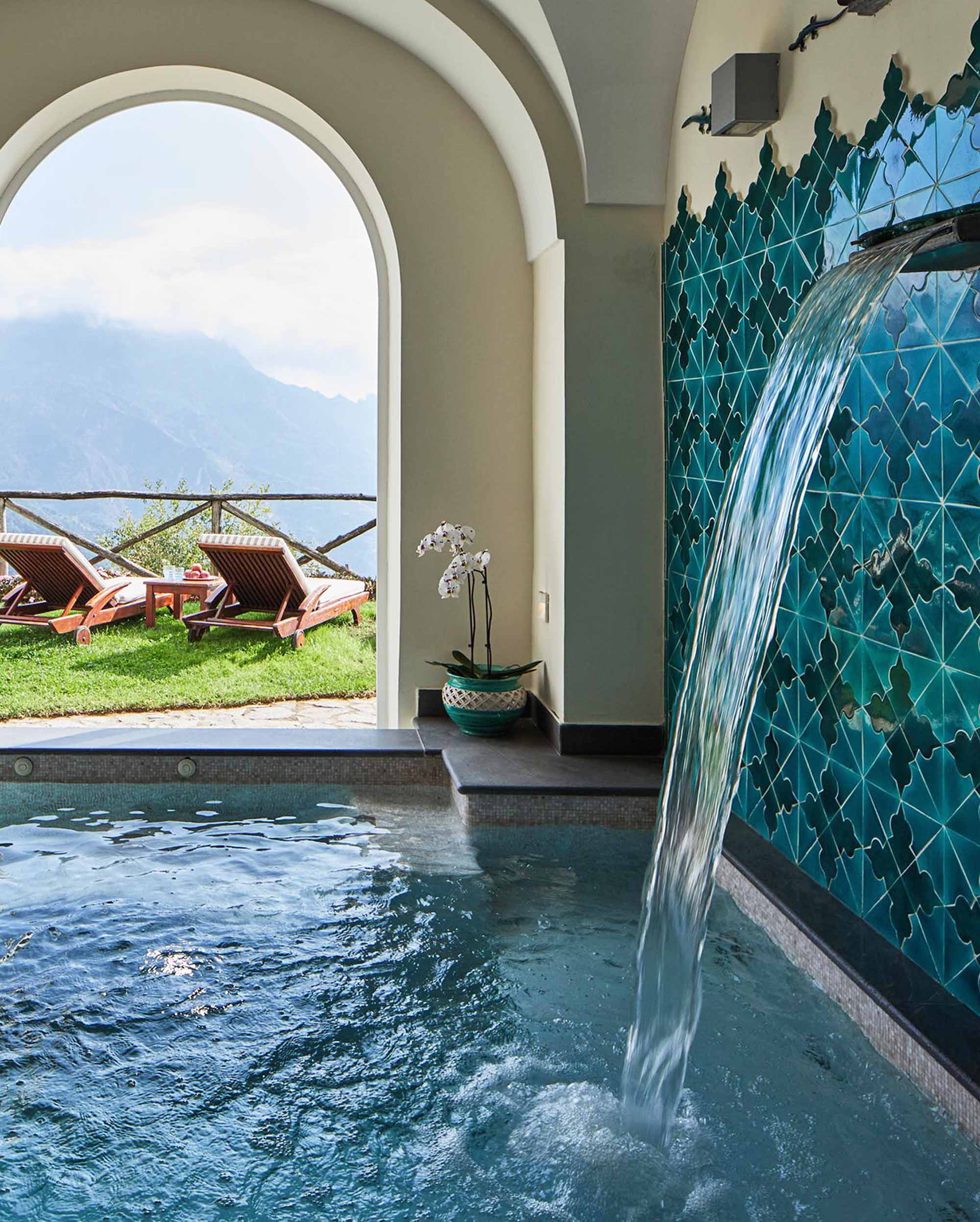 The spa at Palazzo Avino is certainly fit for the noble, with a range of treatments featuring products from a special collaboration with EffegiLab. The company, along with the research done by Attilia Avino on her travels throughout the region, created products based on ingredients of the Campania: lemons from Sorrento, Annurca apples (a variety that originated in Southern Italy) and Vesuvian apricots. After your treatments, enjoy the hydrotherapy pool or Turkish steam bath.