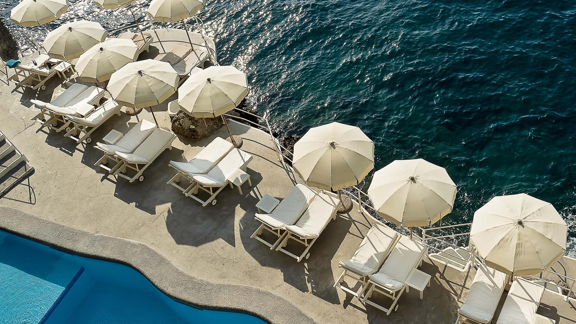 Santa Caterina boasts a private beach club, accessible by an elevator that descends through the cliffs to the water's edge. It’s quite a sight to see, with a saltwater swimming pool that snakes around the cliff and all the food and drink you’d need for a day in the sun, living your best dolce vita lifestyle.