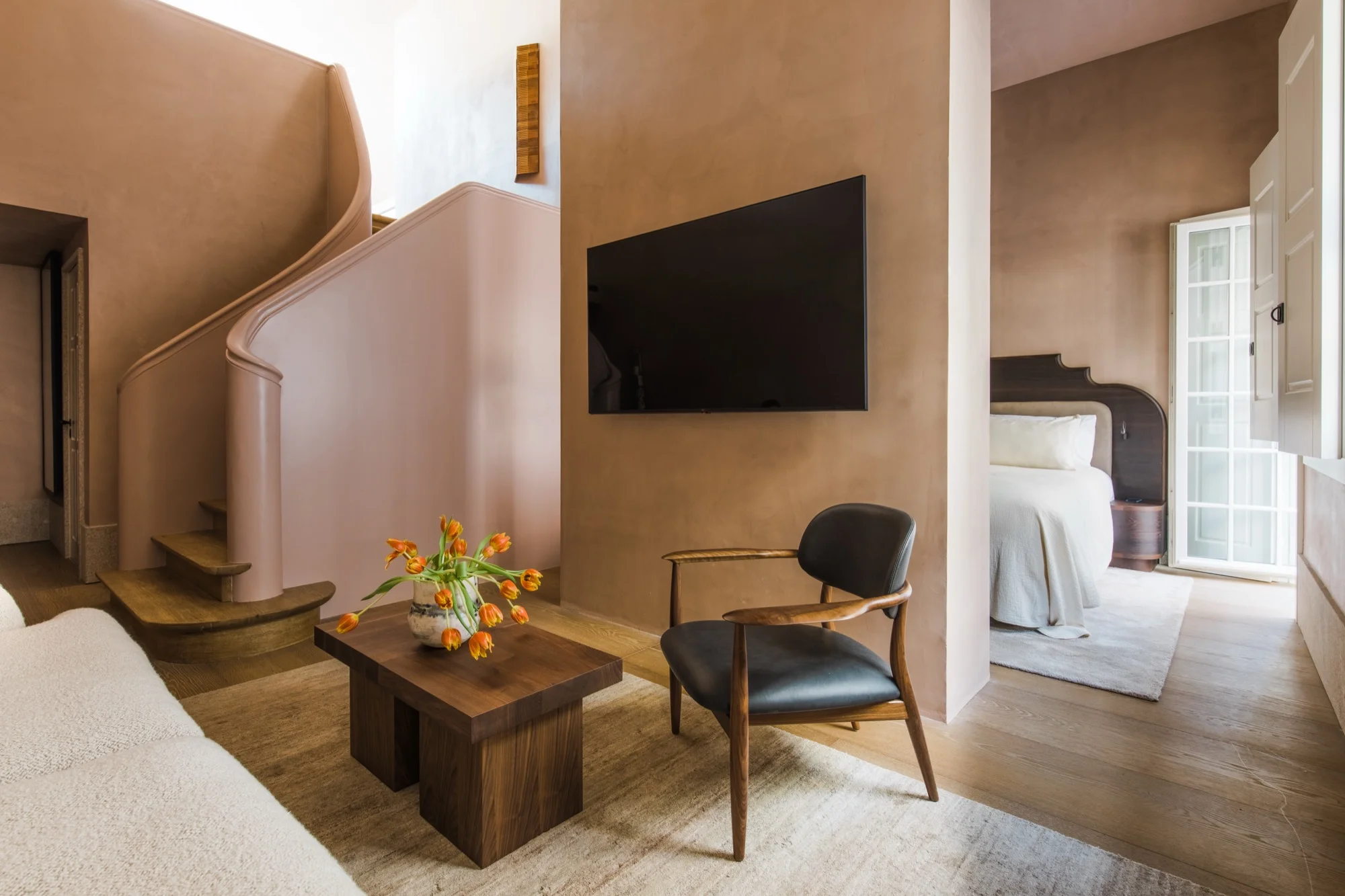 Eighteen keys—sixteen suites and two double rooms—are distributed across five interlinked heritage buildings. The mix is refreshingly literary: each category reads like a chapter in a thoughtful book rather than a standard room matrix. Space is generous, from the surprisingly large doubles to suites that stretch into several rooms, and the mood leans toward cocooning.